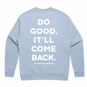 The “Do Good. It’ll Come Back.” crewneck is designed for those who believe in leading with kindness and showing up with intention. Knowing whatever you put into the world is bound to come back in plentiful. Crafted with a relaxed fit and mid weight 9.4 oz fleece.