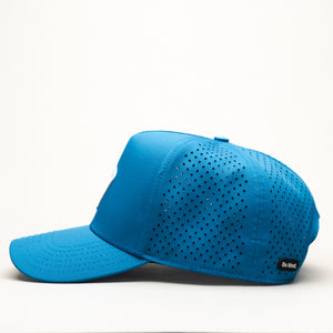 Ride the wave of style with the Wave Runner Hat. Its striking blue hue, reminiscent of clear ocean waters, is perfectly accented by a clean white outline emblem. This hat combines a sleek, contemporary design with practical comfort, featuring lightweight fabric and excellent ventilation. It's the ideal accessory for anyone seeking a fresh, athletic look for their outdoor adventures or daily wear.