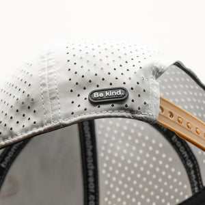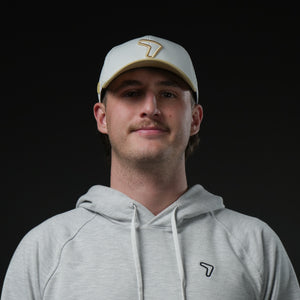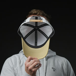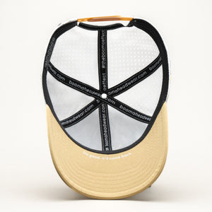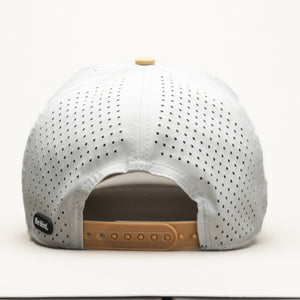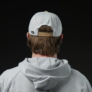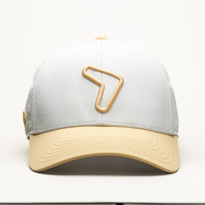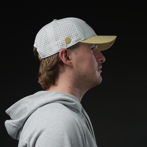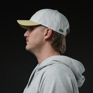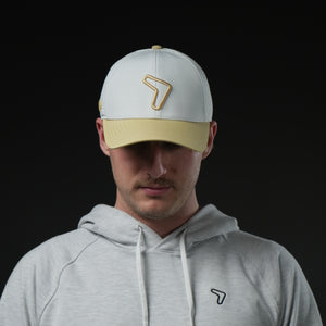 Find your natural stride with the Desert Dune Hat. Inspired by earthy tones, this cap combines a serene light grey top with a warm, inviting tan brim, highlighted by a distinctive, tonal embroidered logo. Designed for both style and function, its lightweight and breathable construction makes it perfect for outdoor adventures or adding a touch of laid-back sophistication to your casual wear.